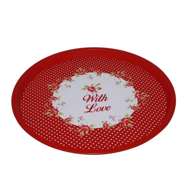 This house tin tray from Tinpak is a decorative tin tray with an attractive look. Perfect for tabletop display. The house tin tray measures dia 12.6" x0.7" wide.